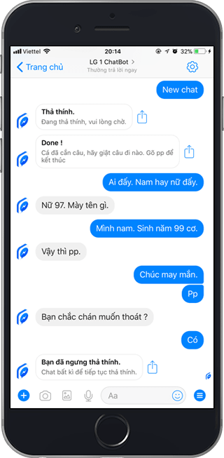 Bạn có thể câu nhiều cá, thả nhiều lần. Hay đơn giản như mình vào Chatbot để luyện kĩ năng giao tiếp.